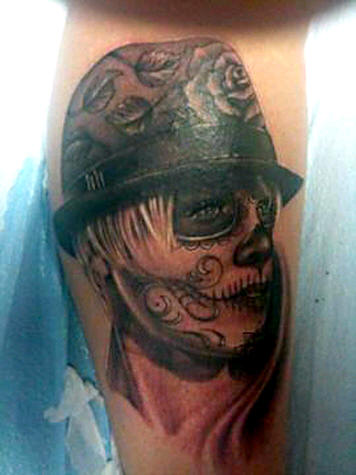 Does that skeletal face look familiar? look close,,, It's Pink! The pop singer's husband, motocross star Carey Hart, had this 'Day of the Dead-style' tattoo of his sweetie inked on his leg and then posted the results on Twitter. Seems like a vote of confidence for the couple, who separated in 2008 after two years of marriage but patched things up earlier this year.