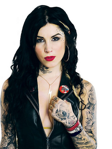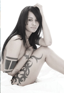 sleeve, one partial sleeve, chest work, stomach tattoos and a wardrobe that shows it all
